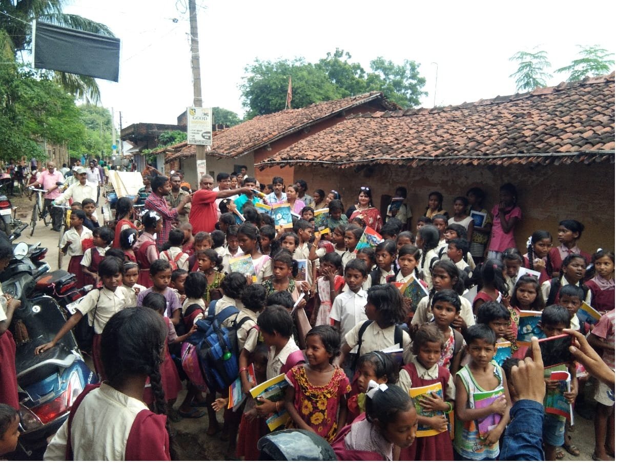 आज दिनांक 3 दिसंबर 2025 को राही ट्रस्ट की ओर से घोड़ाबांधा के लुआबासा स्थित मध्य विद्यालय में डेढ़ सौ बच्चों के बीच पाठ्य सामग्री