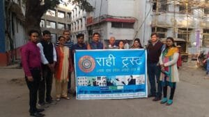 राही ट्रस्ट के द्वारा पाठ्य सामग्री एवं कपड़ों का वितरण किया गया